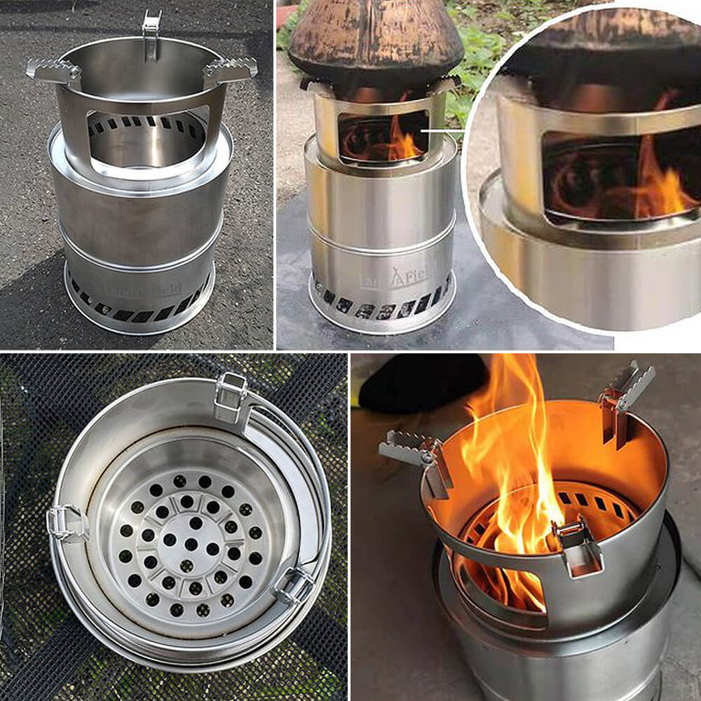 二次燃焼方式でエコでクリーンなたき火燃料が燃える時に発生したガスを二重構造の中に還流させて再び燃やすことで火力を上げる二次燃焼方式を採用。