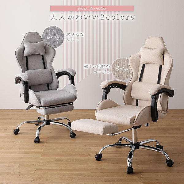 ■背面もキレイな仕上げヘッドレストはワンタッチで取り外しOK■商品スペック ■サイズ ・幅64×高さ115-131×奥行70-125cm ・座面高さ:45-55cm ■材質 ・張地:ポリエステル100% ・本体・脚部:スチール ・内部:ウレタンフォーム ・肘掛部:ポリプロピレン ・キャスター:ナイロン ■原産国:中国 ■カラー:ベージュ、グレー ■梱包サイズ・重量 ・幅79×高さ56×奥行25cm・19kg ■商品に関するご注意 ・製品のデザイン・仕様・梱包は予告なく変更することがございます。