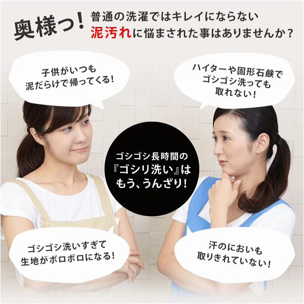 ・スポーツ(野球・サッカー・ラグビー・屋外テニス・アメフトなど)の 泥汚れや作業着などのガンコな汚れには効果が抜群です。
